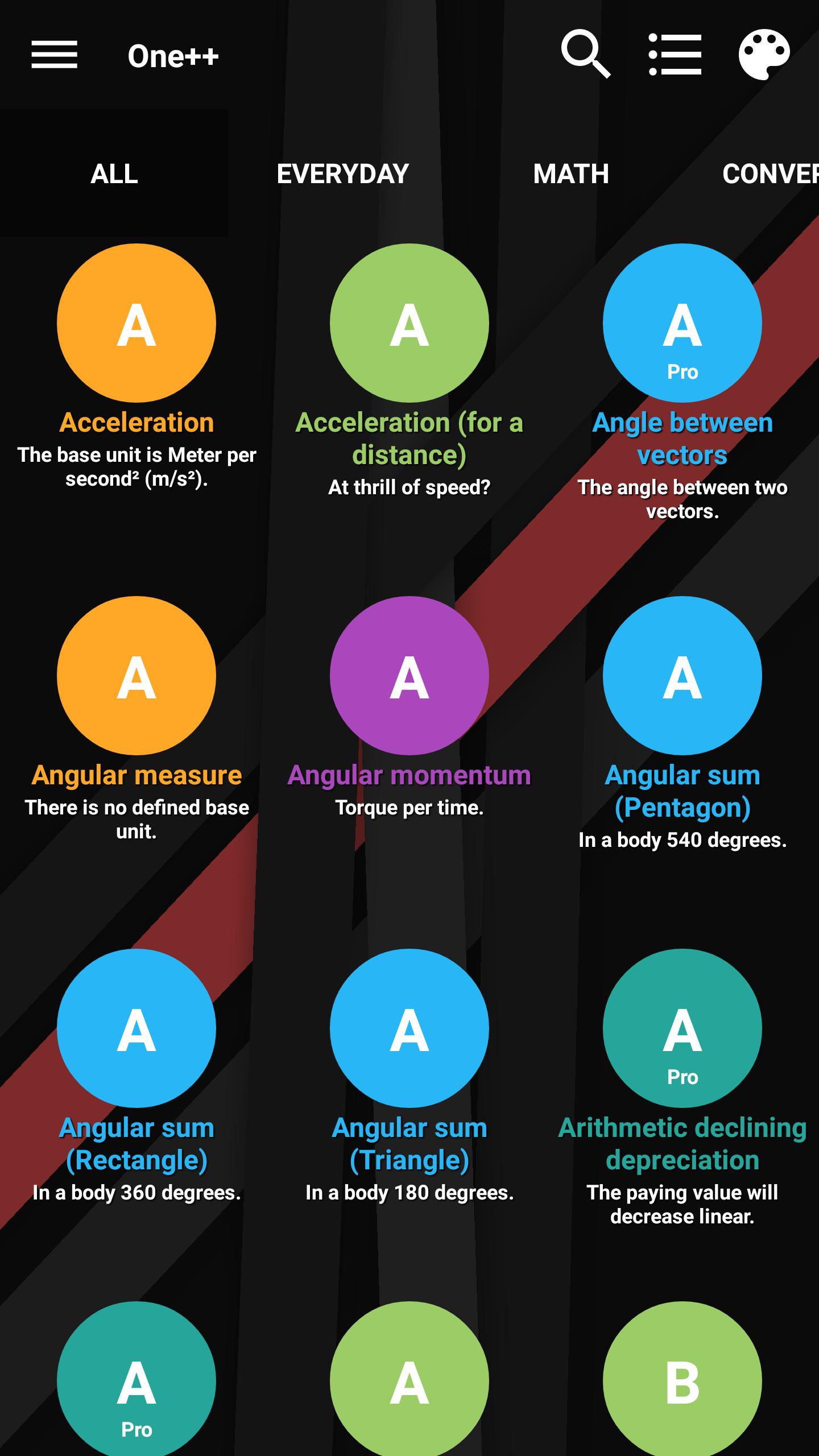 ★ 5 categories: Everyday, math, converter, physics und economy