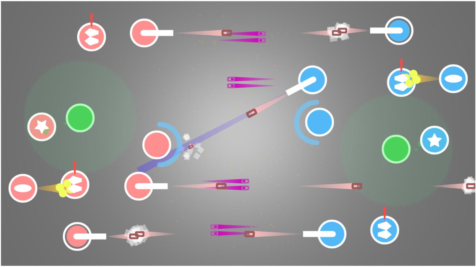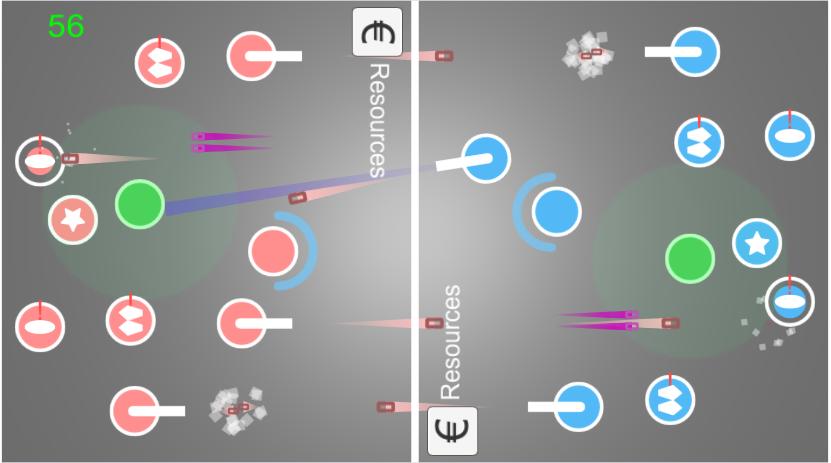 Manage gun platforms on your side of the screen to overcome the enemy's side. Your commander mines the asteroid and generates money, which you can spend to buy new platforms. You'll have to move and rotate the platforms and use their special abilities to destroy the enemy commander.