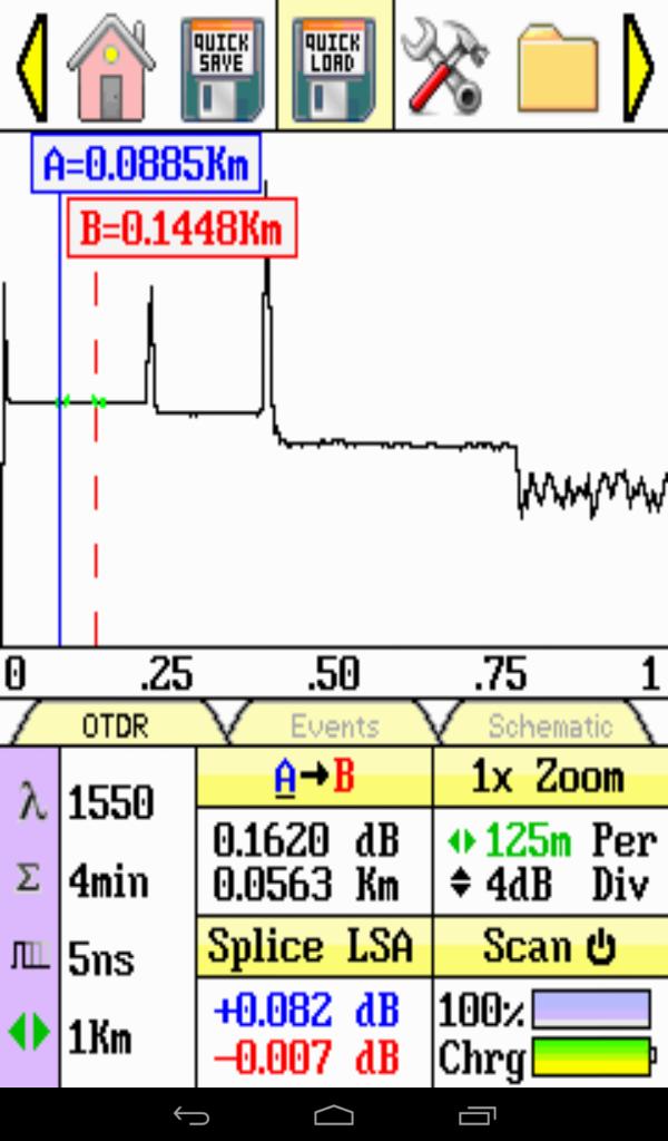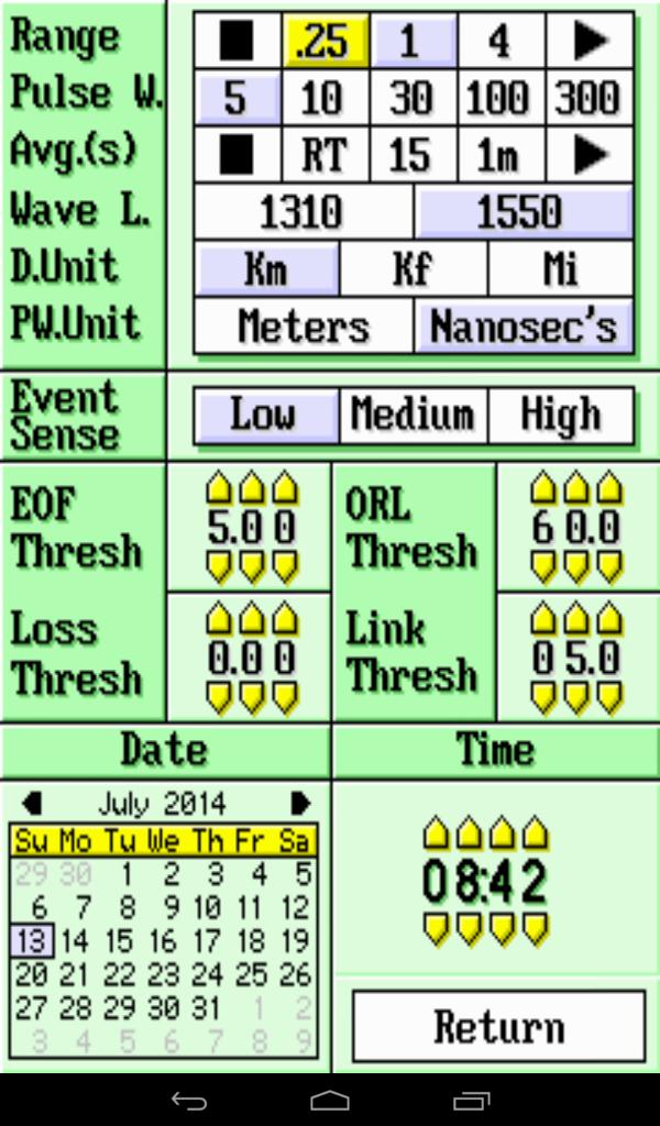 A virtual instrument application which allows remote control over bluetooth to select handheld OTDR instruments.