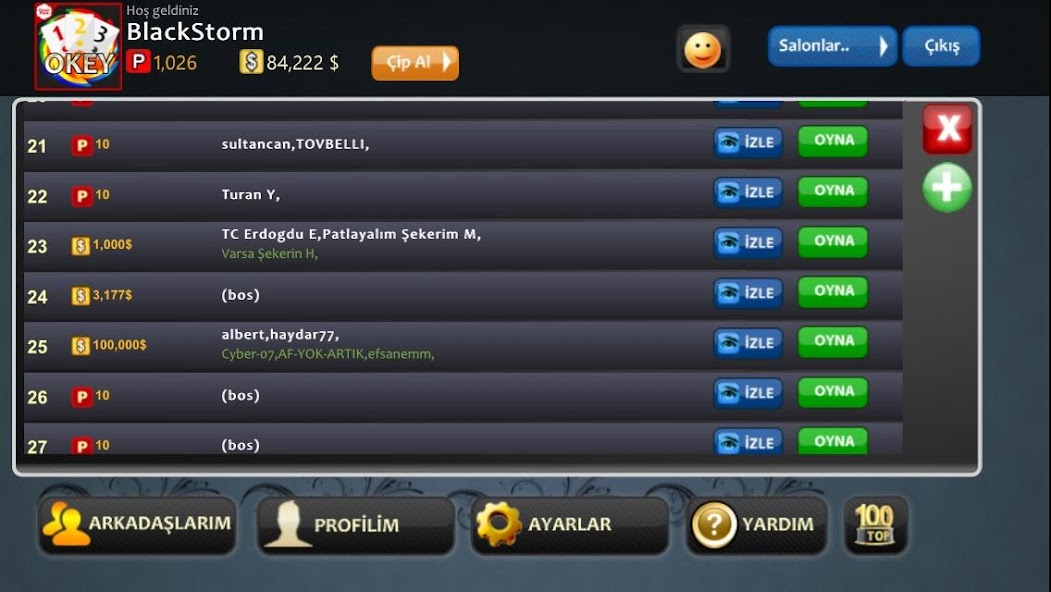You can play Great Turkish table game Okey. You can play on all tables with Point or Chips. Play Now %100 FREE and SAFE.