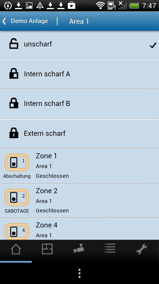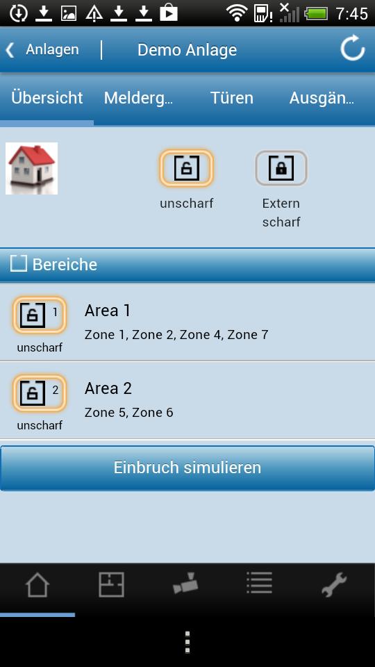 - Display of the condition of detector groups (alarm providers)