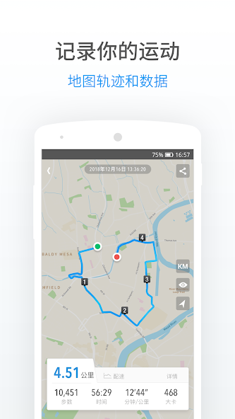GPS activity tracker tracks outdoor fitness activities on a map