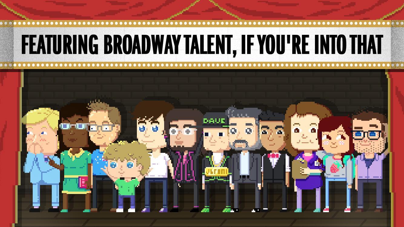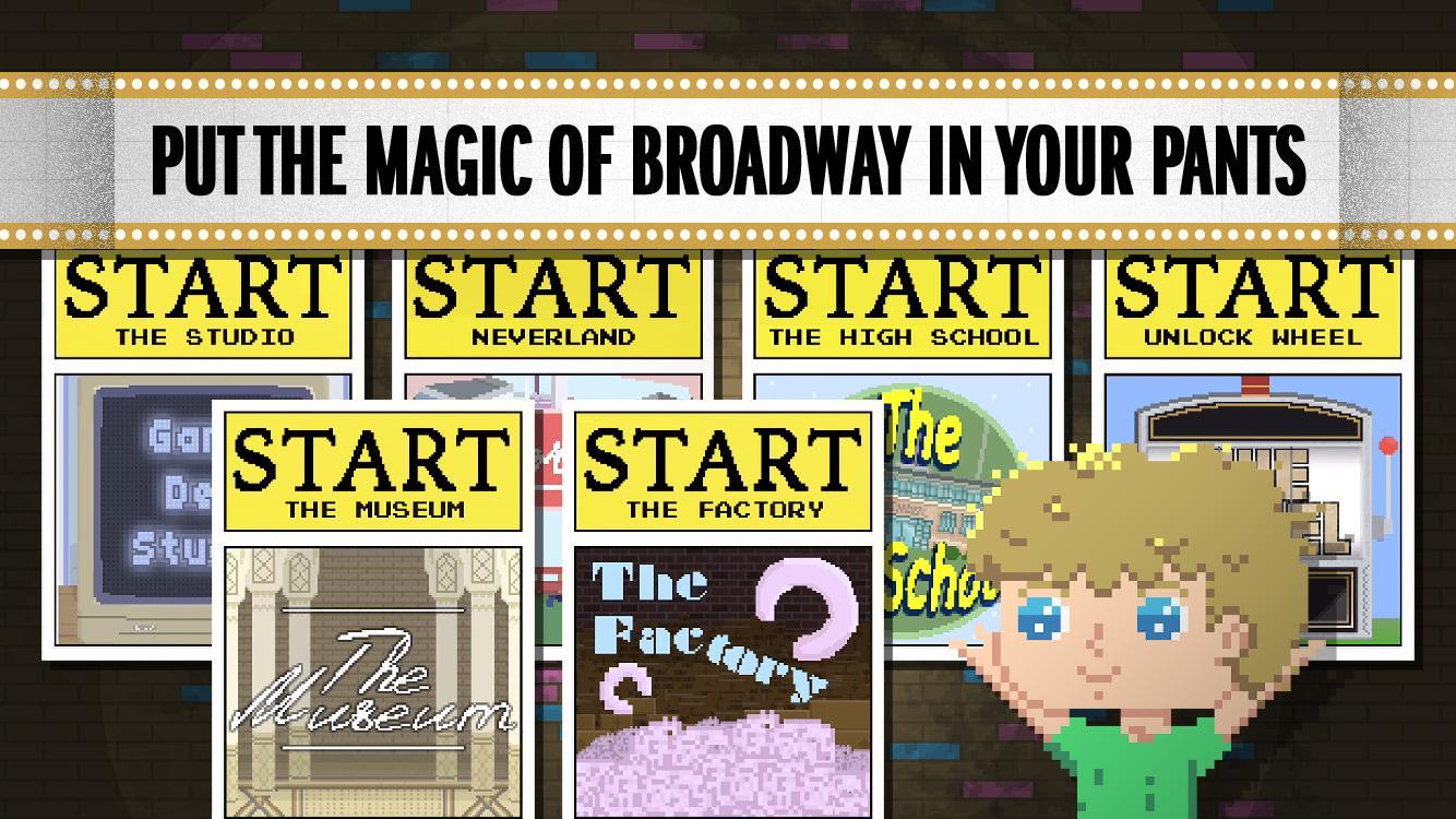 Pack peanuts, accidentally worship demons and save the theater in this fully original mobile musical! Featuring fast-paced mini-games, original songs and incredible Broadway talent! Play as Peter, an aspiring young director who wants to bring theater back to his quaint hometown. Put your fingers to the test by performing dozens of challenging mini games to convince the local weirdos to join the cause.