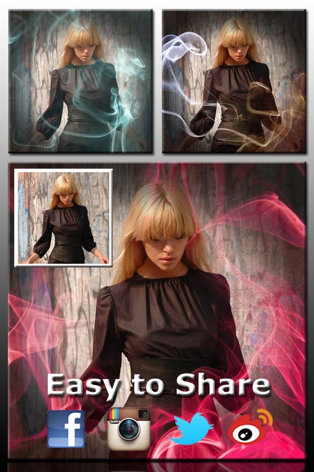 Photo camera which transforms your photo into various gorgeous effects by adding smoke to your photo! All effects are designed together by professional photographers and real artists to provide you the most amazing photo. Suitable for portrait, children, pet, building and scenery.