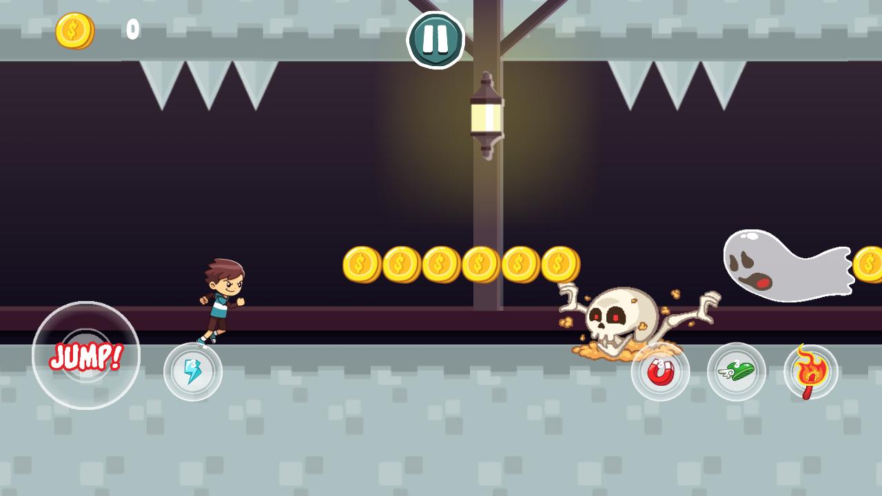 Pikabo goes on his great adventure as he dodges ghost and goblins and build up his coin count.