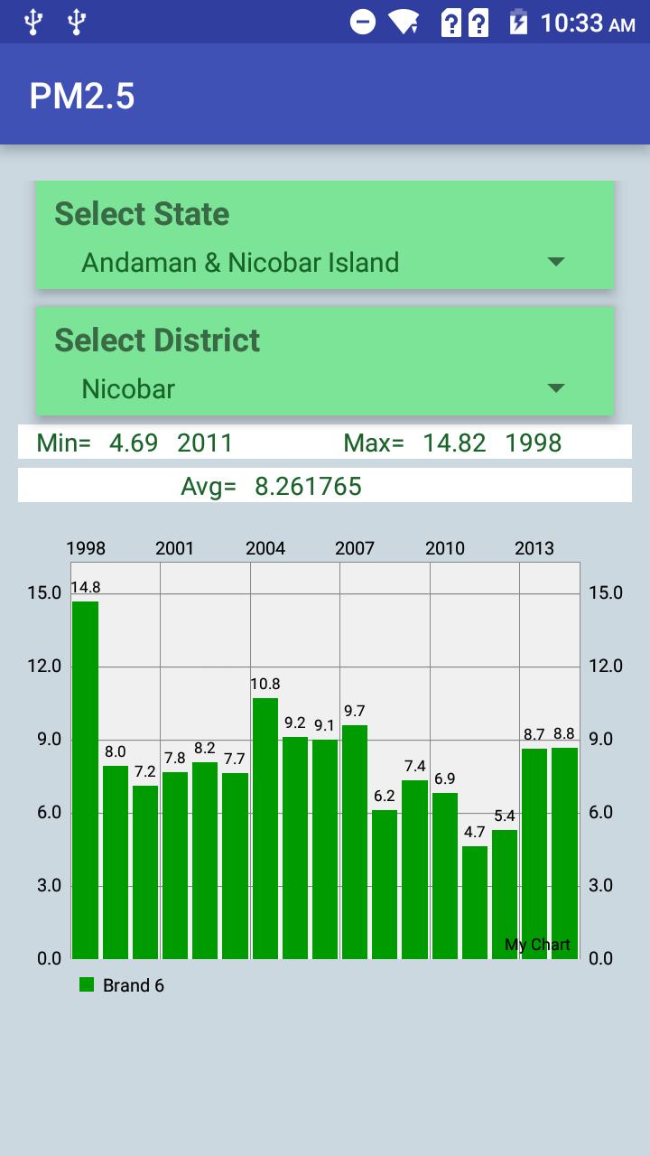 This App allows You to Analyze How Polluted is Your State & District by Looking at PM2.5 pollutant levels of Last 15 Years of Each State & District of India.