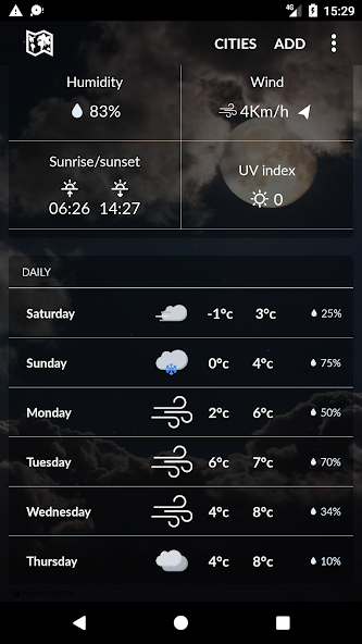 Weather Poland is a mobile application weather free, with an ergonomic design and modern in order to ensure a better user experience and high readability of the weather information.