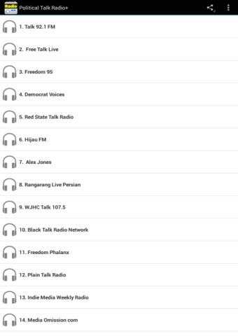 Political Talk Radio ***** Listen to the best radio stream available. We have gathered the best internet radio stations from the web. This radio app is loaded with numerous stationsfrom all around the world. Listen to your favorite music now from everywhere on your android device.