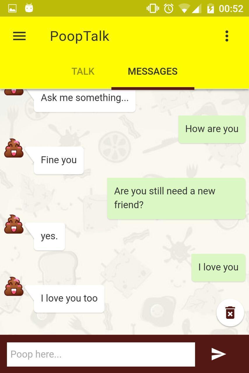 PoopTalk is a poop that talk with you, she answer whatever you ask