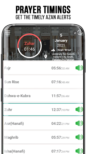 During Namaz time, this amazing feature automatically silences your mobile. You may also set the silent duration manually.
