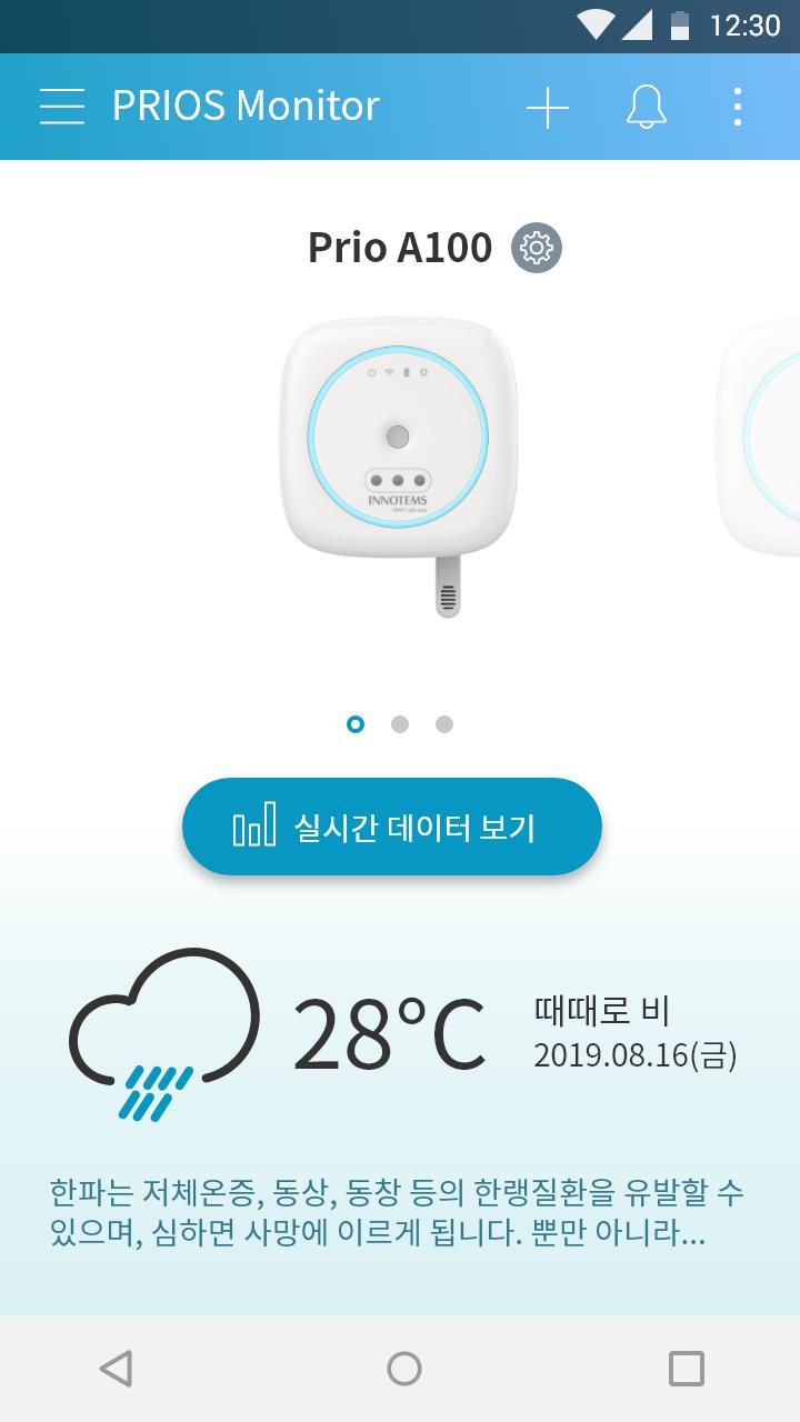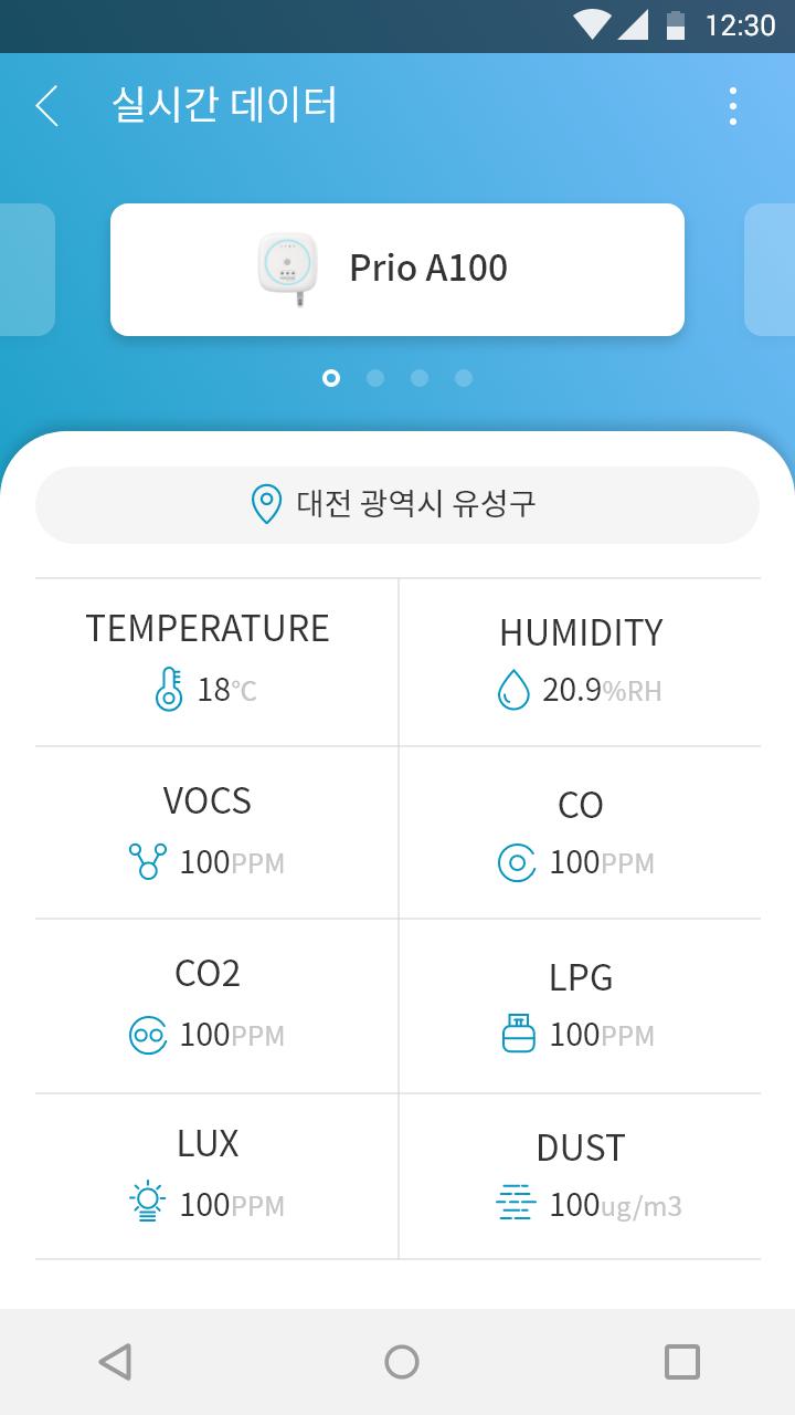 Prio is an IoT-based air quality measurement service that monitors air quality readings on associated measuring instruments (A1, A10, A100, A100d) and sends notifications to the user.