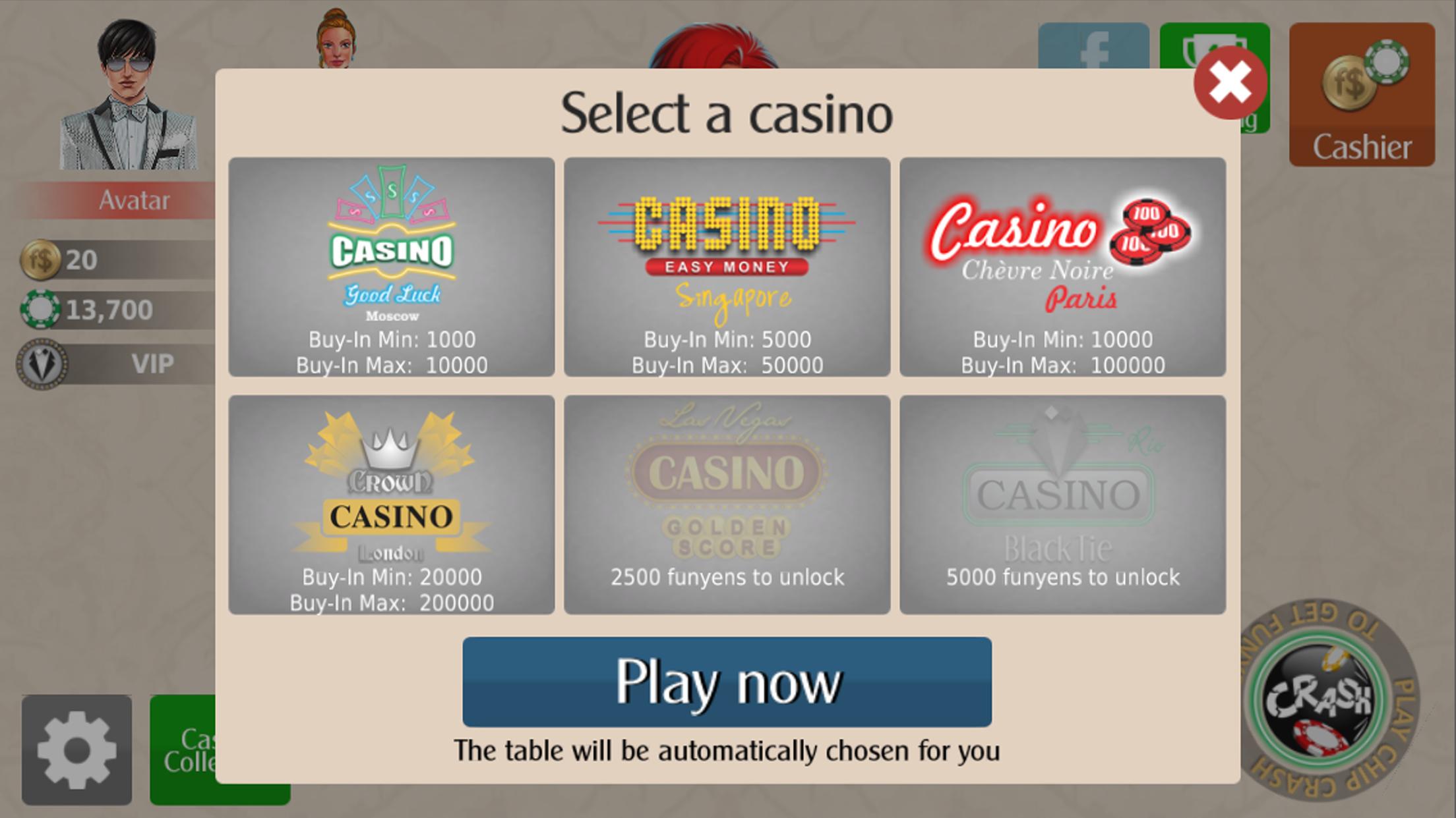 Há também o minijogo de acidente de chip, para você se divertir entre as peças. Você pode ganhar Funyens, a moeda do jogo, que pode ser trocada por chips de cassino a qualquer momento e de graça!