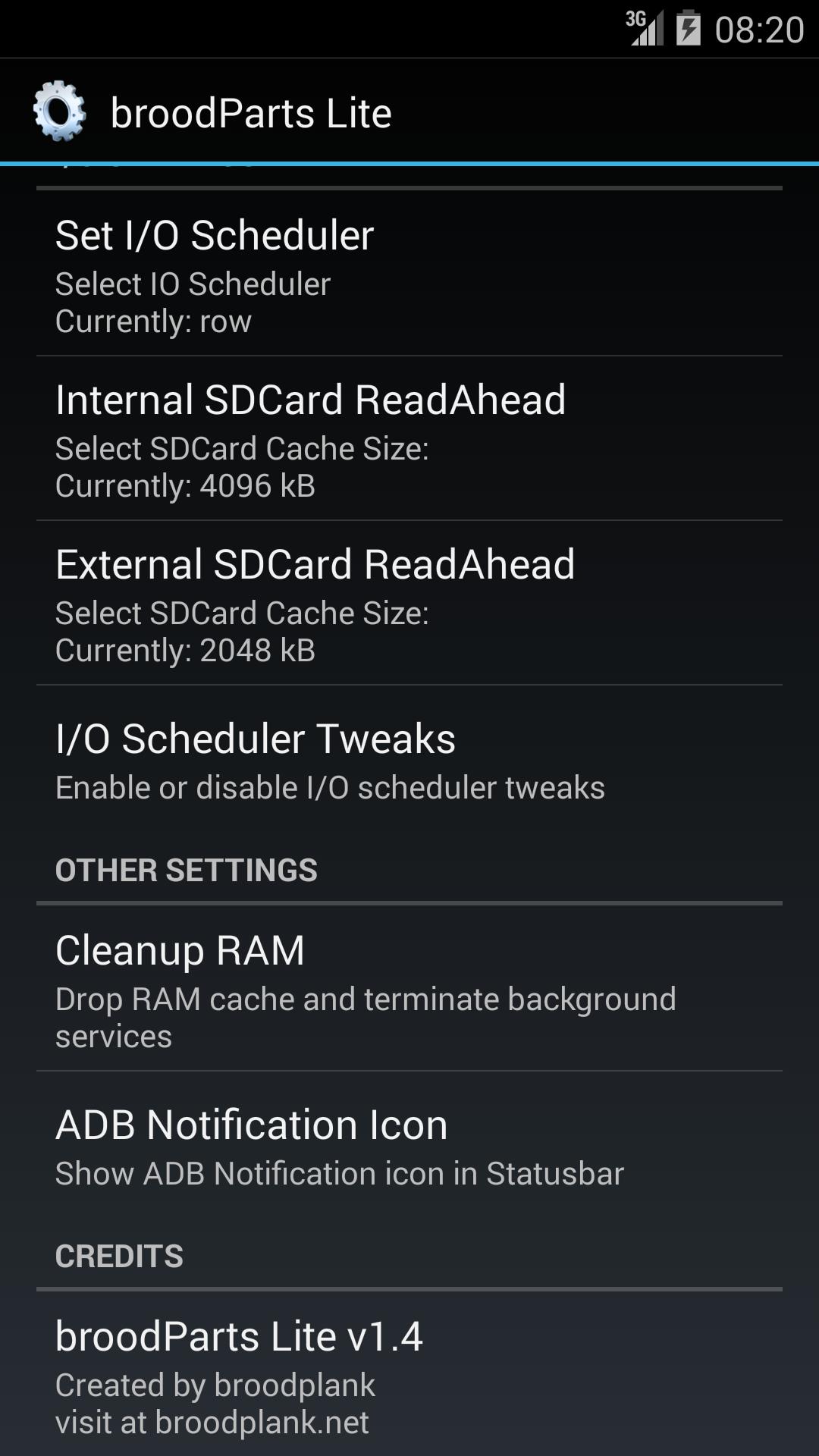 broodParts Lite é uma extensão para suas configurações de ROM. Inclui as principais funções radiculares que você precisará em todas as ROM enraizadas.