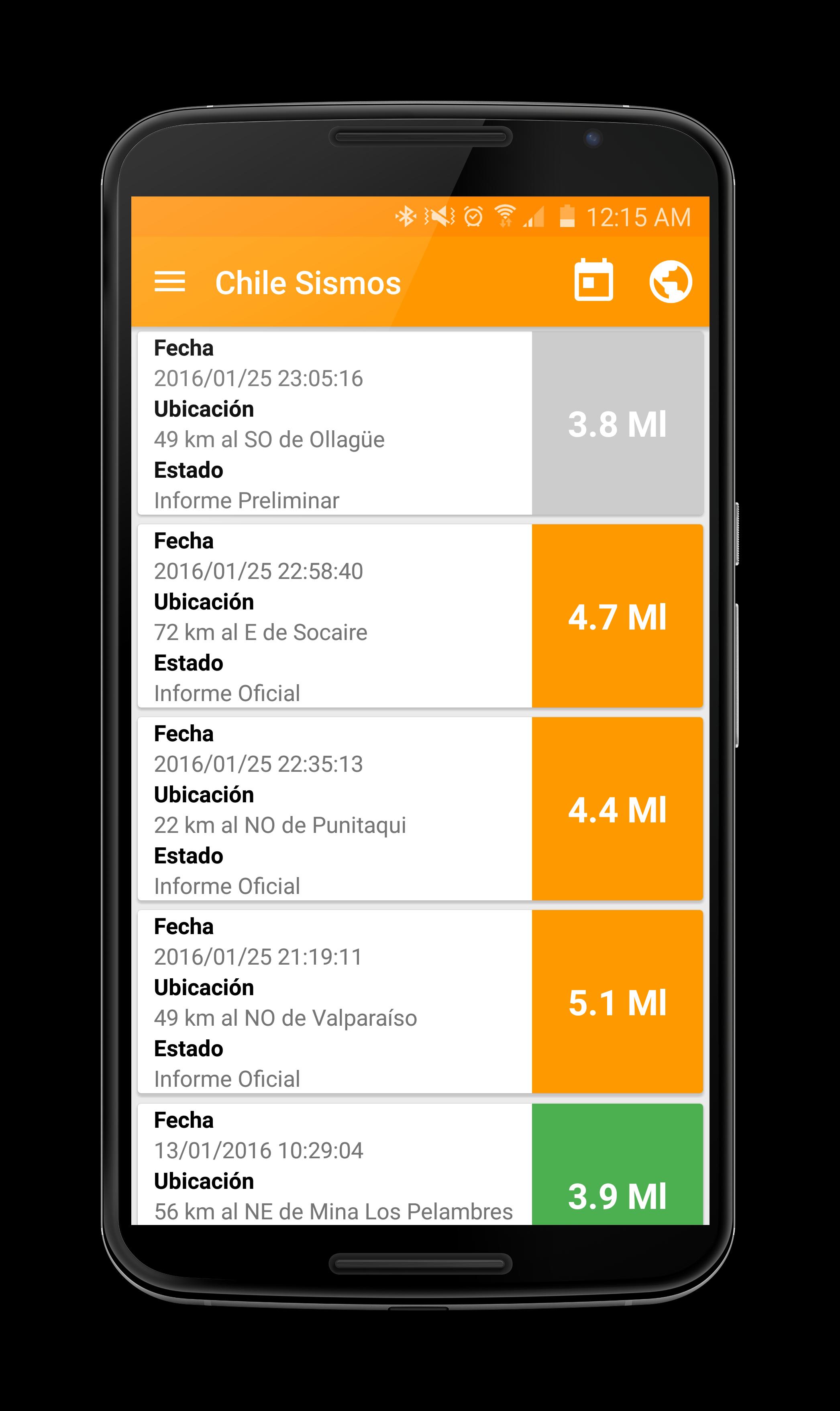 - As informações implantadas correspondem a relatórios oficiais emitidos pelo Serviço de Sismologia da Universidade do Chile.