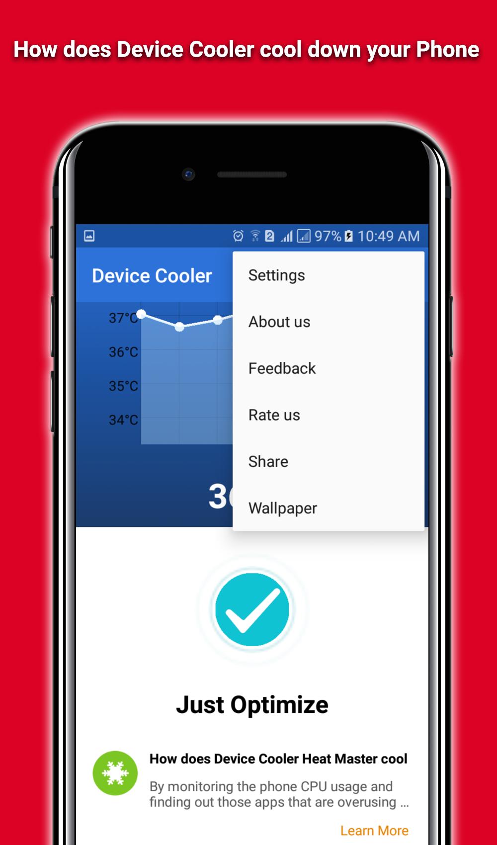 Um dos aplicativos de telefone Android mais simples da CPU Fast Cool Mestre e Android que supera o problema de aquecimento comum dos smartphones.
