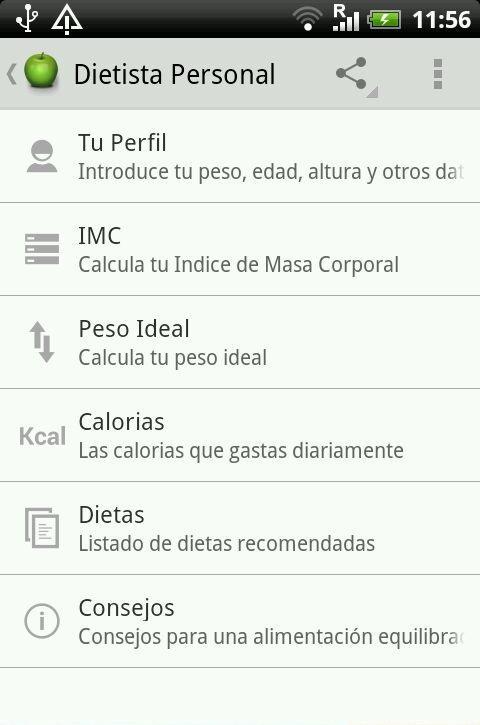 Aplicação simples e útil para descobrir seu IMC (índice de massa corporal), seu peso ideal e quantos quilos você pode poupar. Além disso, você pode ver as calorias necessárias todos os dias, de acordo com suas características fisiológicas e seu nível de atividade física. A partir dos dados, o aplicativo recomendará a dieta semanal menus simples e variada, com sua preparação e ingredientes. Também mostramos uma lista de suprimentos úteis de dicas. Versão 2.03: