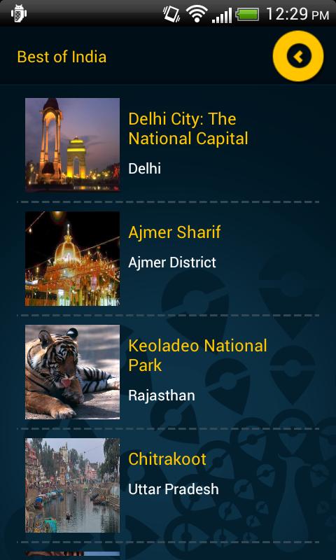 Além disso, o aplicativo captura os aspectos culturais, sociais e históricos da Índia, incluindo dança, música, arte, artesanato, feiras e festivais. O aplicativo mostra todo esse país, em termos de circuito, em termos de estado, em termos de lugar e categoria. O aplicativo usou fortemente a tecnologia GIS para facilitar o usuário para navegar em seu caminho para qualquer um dos locais turísticos em qualquer estado da Índia.