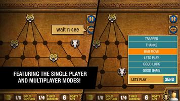 Cabras e Tigres (Aadu Puli Aatam em Tamil, Puli-Meka em Telugu, Adu-Huli em Kannada e Bagh Chal em Nepali) é um jogo de estratégia de dois jogadores, mas não é seu jogo regular como xadrez ou checkers. Cabras e Tigres é um jogo de estratégia desproporcional, o que significa que as cabras e os tigres do quadro não possuem as mesmas propriedades durante a jogabilidade. Os tigres têm a capacidade de capturar cabras e eliminá -los da placa, enquanto as cabras têm o poder dos números superiores. As regras são simples e muito fáceis de entender, mas o jogo é seriamente envolvente. O que mais este jogo de tabuleiro antigo também pode ser sua academia cerebral para o dia! É hora de fazer uma jornada de ser um humilde bahadur até a Royal Mahachatrapathy com este antigo jogo do cérebro social! Portanto, há uma reviravolta na trama, afinal, com cabras e tigres! Então, o que você está esperando! Fique mais inteligente e leve esses neurônios com cabras e tigres!