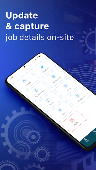 Os engenheiros podem capturar folhas de tempo, notas, peças, despesas, quilometragem, fotos e assinaturas, eliminando a necessidade de folhas de trabalho em papel e viagens caras ao escritório.