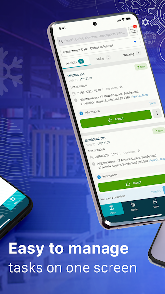 Joblogic Mobile fornece uma interface em tempo real entre o sistema de gerenciamento de serviços Joblogic e os dispositivos de smartphone ou tablets de seus engenheiros.