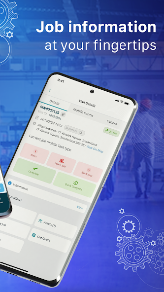 Joblogic Mobile permite que os agentes recebam informações úteis para o trabalho, como endereço, ativos, comentários do escritório e notas do site.