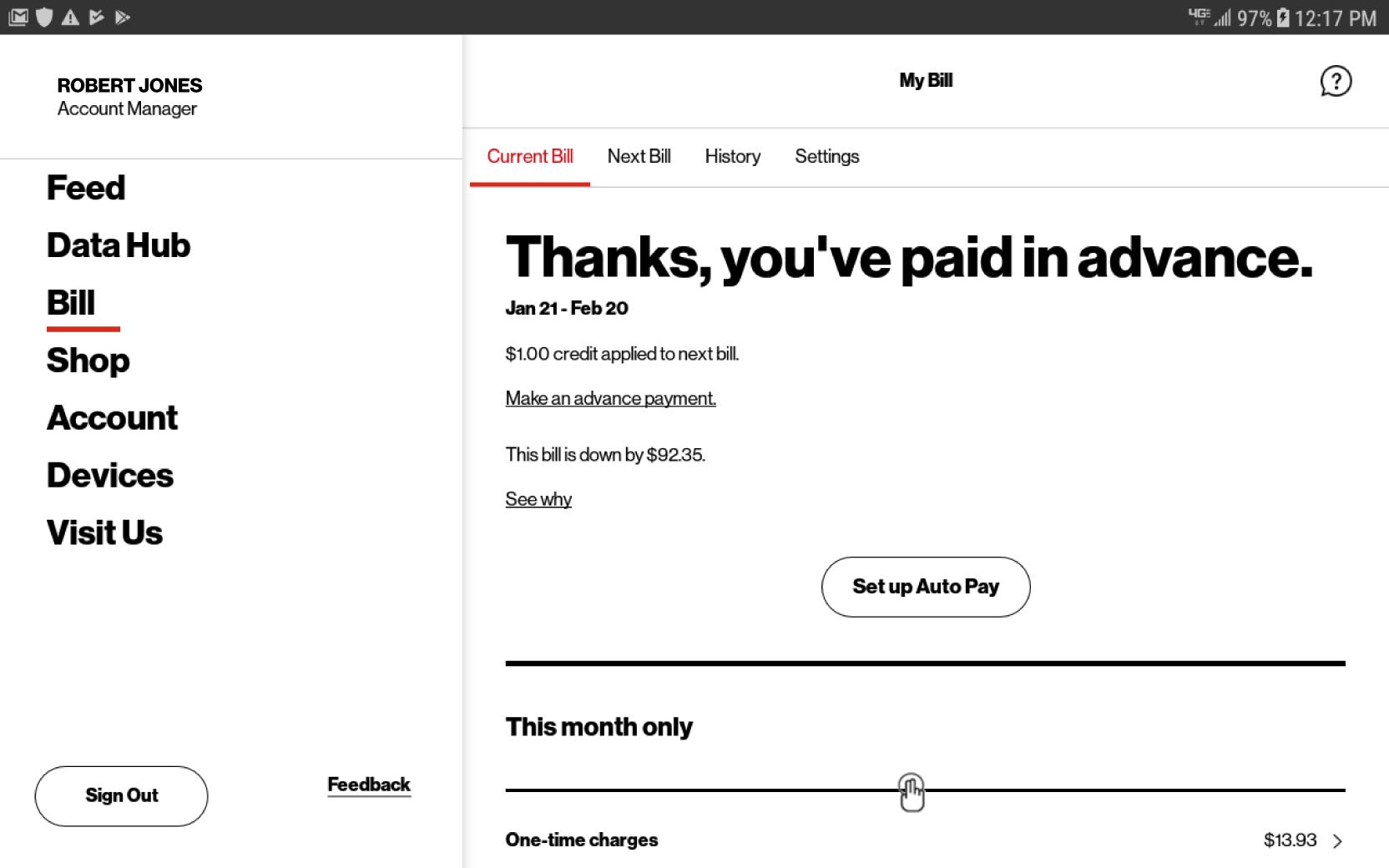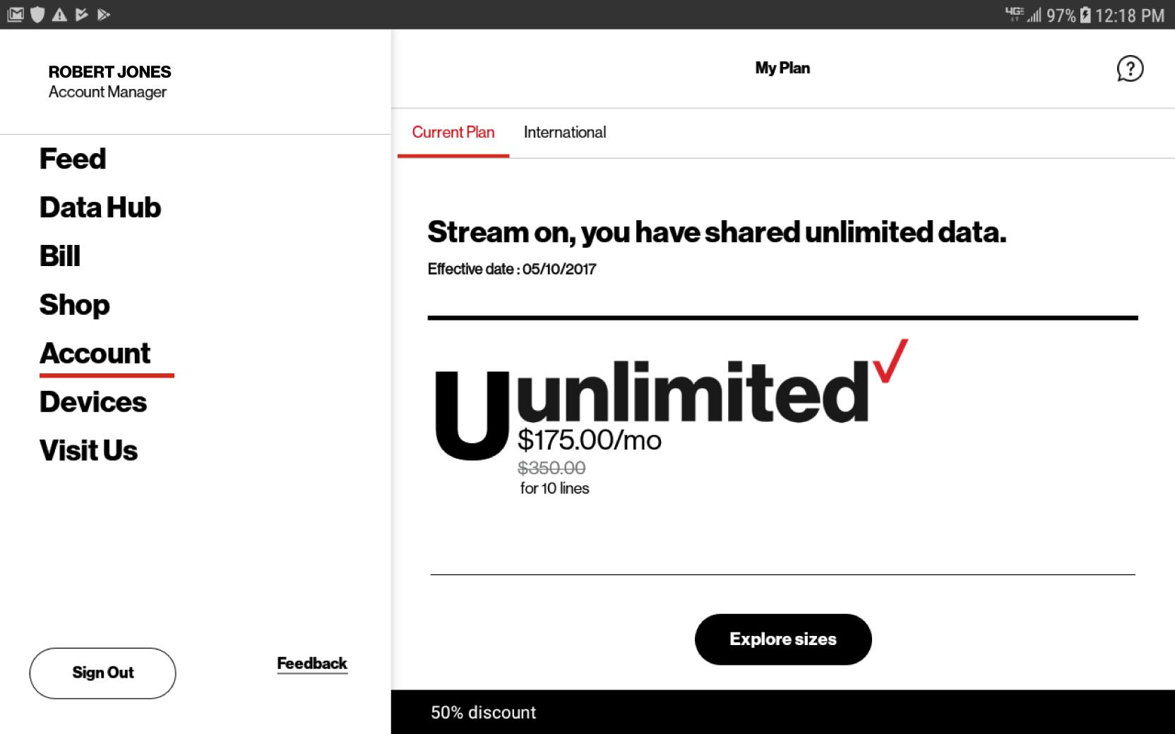 Altere ou gerencie sua conta com segurança em qualquer lugar, a qualquer hora. Mude facilmente para um plano diferente ou fique ilimitado diretamente do seu dispositivo.