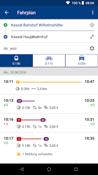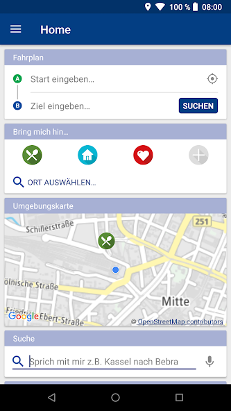 The NVV-App is the mobile timetable information for all means of transport, such as train, RegioTram, tram, BUS, AST and Mobilfalt in the area of the Nordhessischer VerkehrsVerbund (Stadt and Kreis Kassel, Kreis Waldeck-Frankenberg, Schwalm-Eder-Kreis, Kreis Hersfeld Rotenburg, Werra-Meißner-Kreis, Hann.