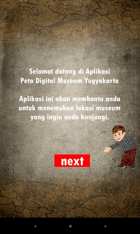 Peta Museum Yogyakarta é um aplicativo Android criado para ajudá -lo a encontrar museus em Yogyakarta com precisão e precisão, porque este aplicativo usa o recurso do mapa do Google. Você será orientado a encontrar a localização do museu que está longe de ser seu alcance. Este aplicativo também possui vários recursos adicionais, incluindo perfis de museus, contatos de museus, coleções e galerias de museus. No contato do museu, você também pode fazer chamadas diretamente para o gerente do museu.