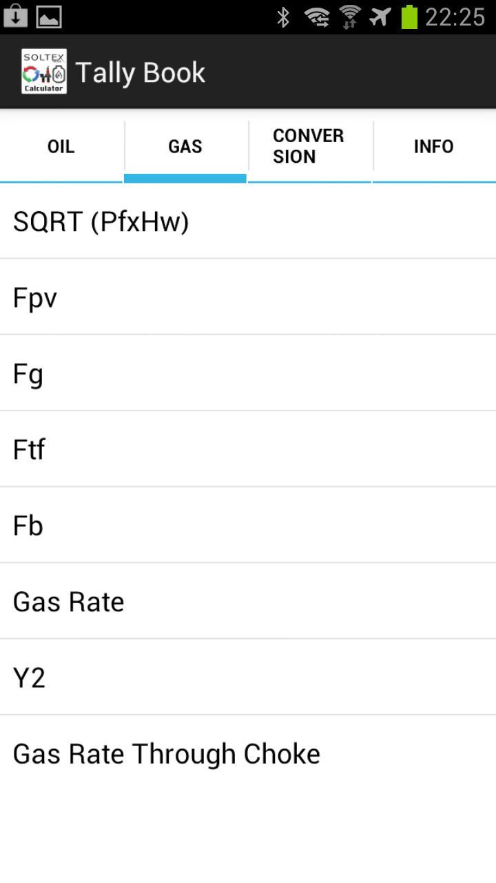 SOLTEX TallyBook é um aplicativo útil que permite executar facilmente cálculos de teste bem, como taxa de petróleo, taxa de gás e fornecer um conversor para todos os tipos de unidades.