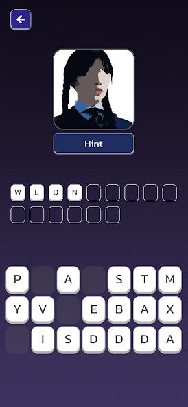 Início jogo Quebra -cabeça de texto Wednesday Addams Trivia