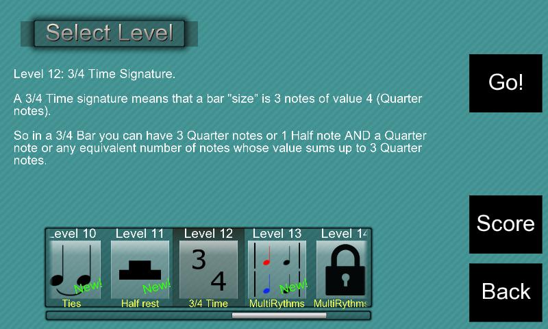 • Simple and understandable explanation for every new music rhythm concept introduced.