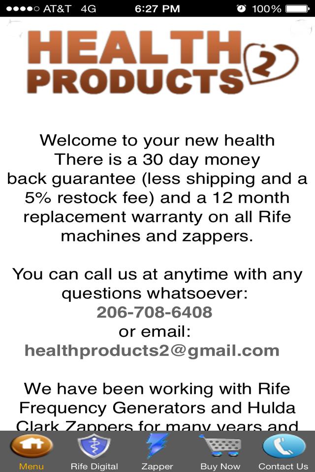HealthProducts2 provides natural options through the use of alternative health products such as the Dr. Royal Raymonds Rife's Machine, the Dr. Clark Zappers, the Dr. Clark Cleanses and the new machine, the Diabmedic, specifically for diabetes treatment.