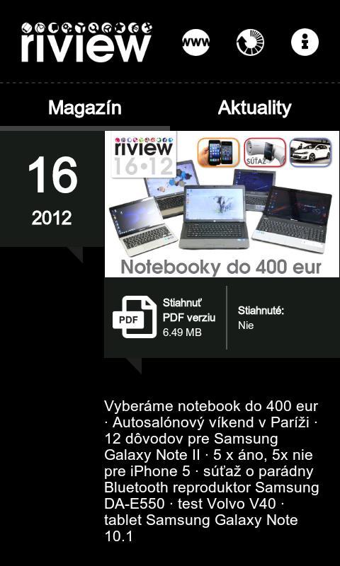 We will welcome your ideas, advice and criticism at info@ Riview .sk. If you also like the magazine and Riview app, we will appreciate if you share your positive impressions with your friends. Thank you!