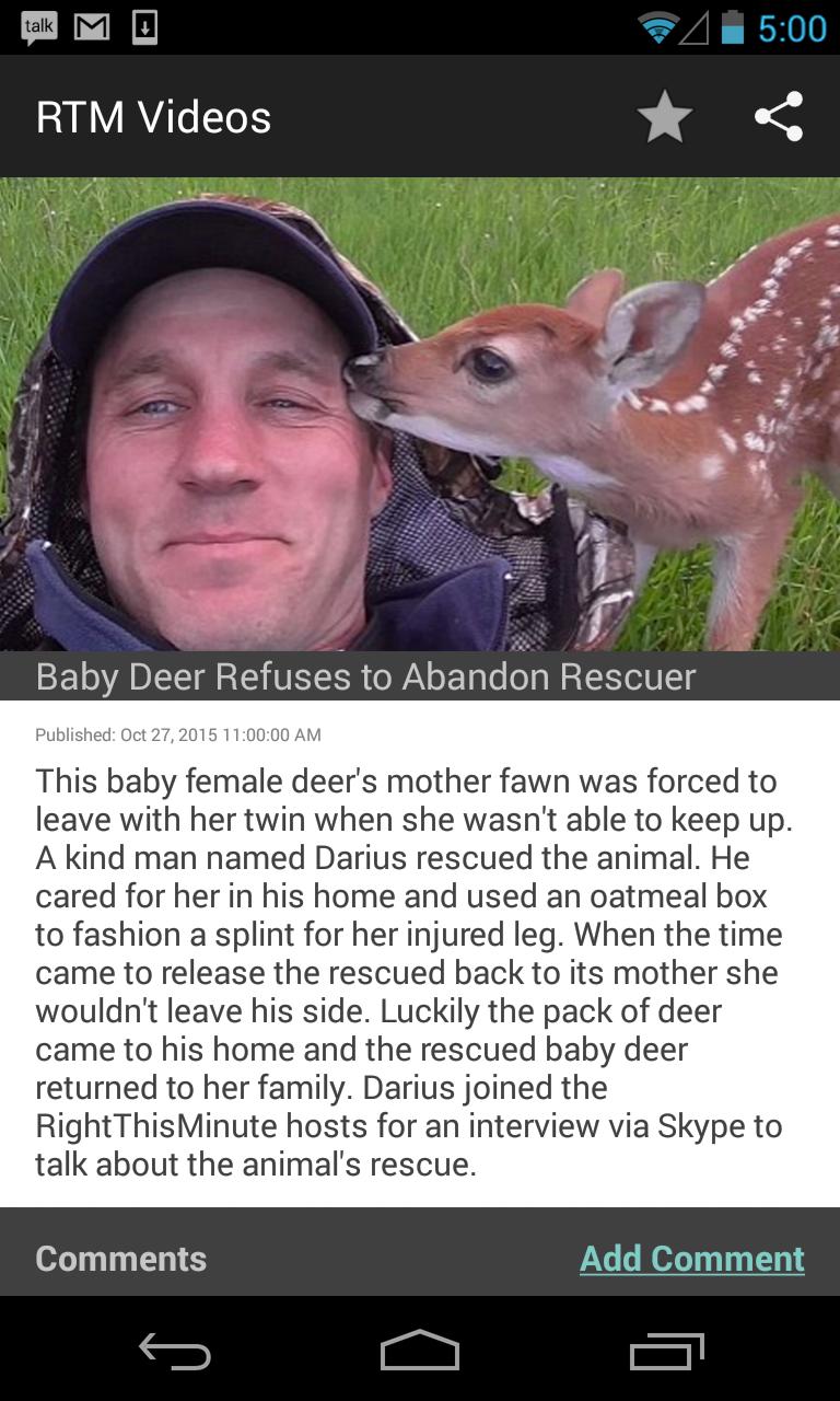 Watch, upload, and share the hottest videos of the web right from your Android phone or tablet. The free RightThisMinute app brings you a daily dose of the latest videos, before they go viral. RightThisMinute is a nationally syndicated television show and 24/7 website that finds the best videos and the stories behind them, bringing you fresh content by the hour.