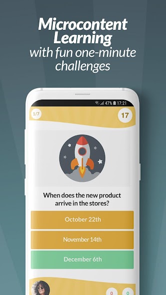 Формат игры в викторине поддерживает микроучений и микроконтент, который эффективно используется для игроков для сохранения знаний о корпоративном обучении, продуктах и знаниях по продажам для нынешних или недавно встроенных сотрудников и партнеров.