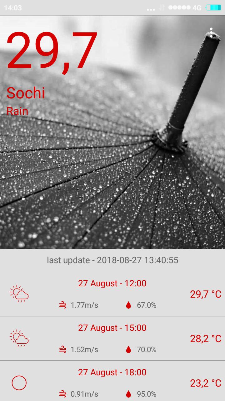 Очень простое и полезное приложение погоды. Получите погоду в любом месте по всему миру или используйте геолокацию, чтобы найти погоду на вашем нынешнем положении. Сохраните все свои любимые места, чтобы легко получить к ним доступ.