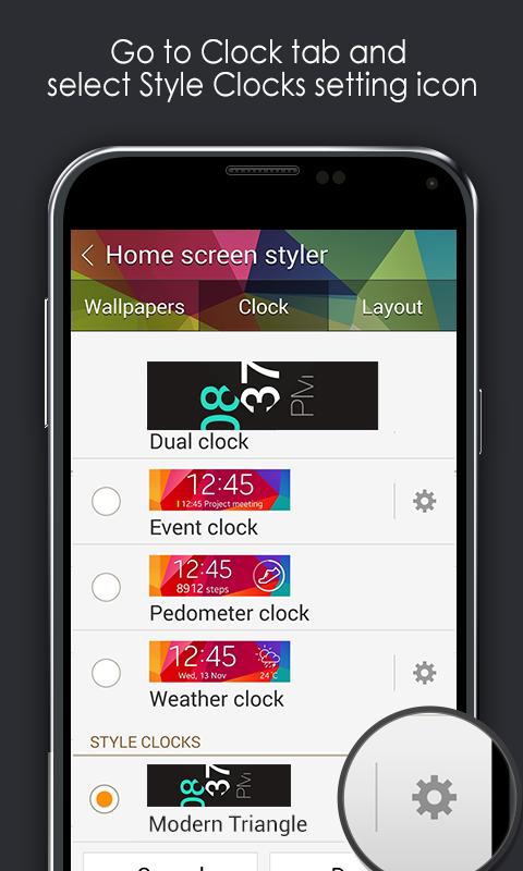 - Вы можете найти загруженное приложение Clock в приложении Gear Fit Manager (Styler Home -экрана → вкладка «Часы» → Меню «Настройки часов»).