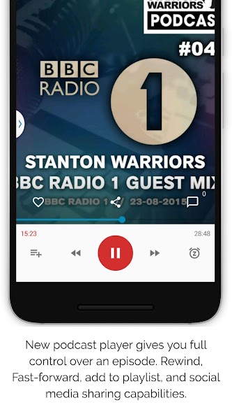 - Потоковой игрок - легко прокрутите эпизод и послушайте подкаст на своем досуге. Прокомментируйте, например, или добавьте эпизод в плейлист и поделитесь эпизодами подкастов на ваши любимые сайты социальных сетей.
