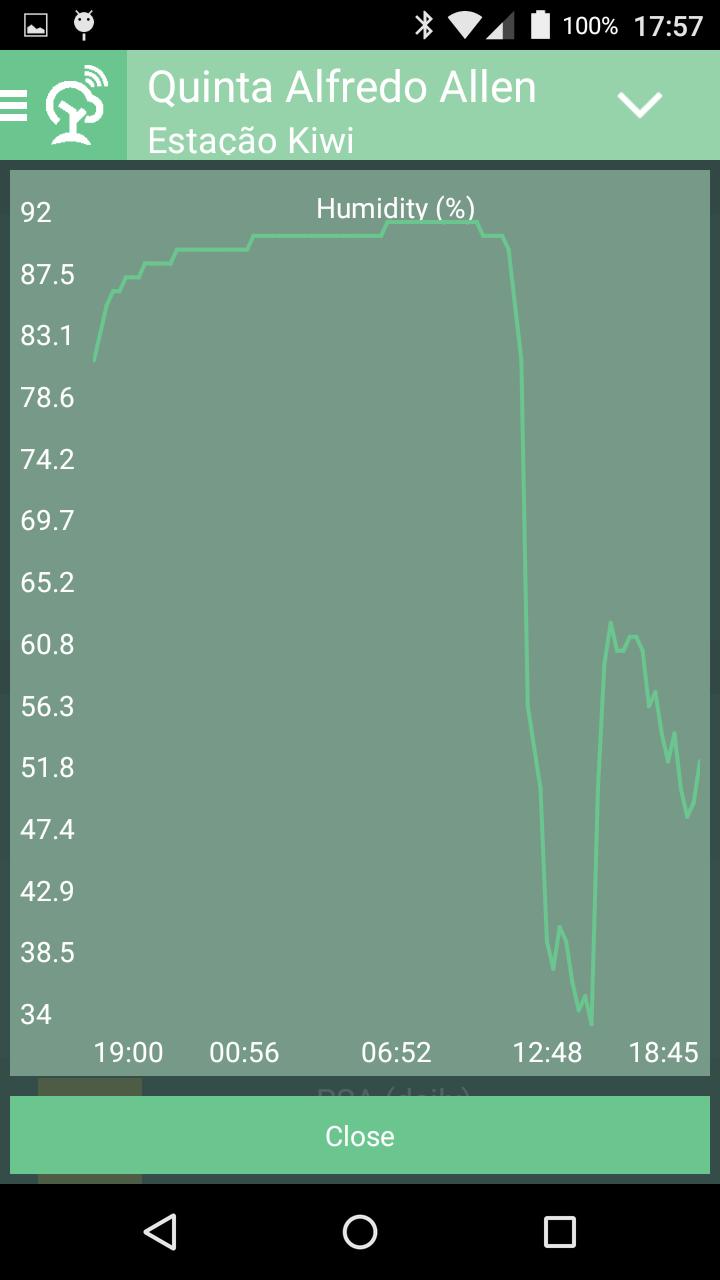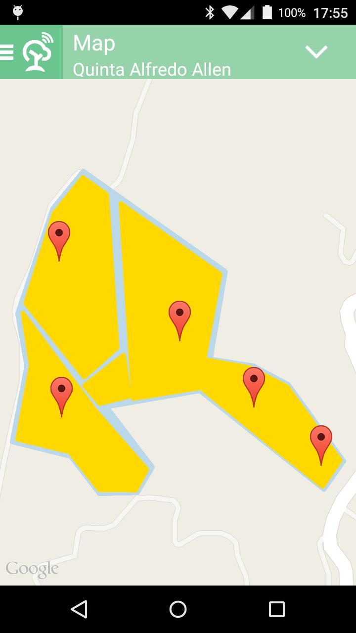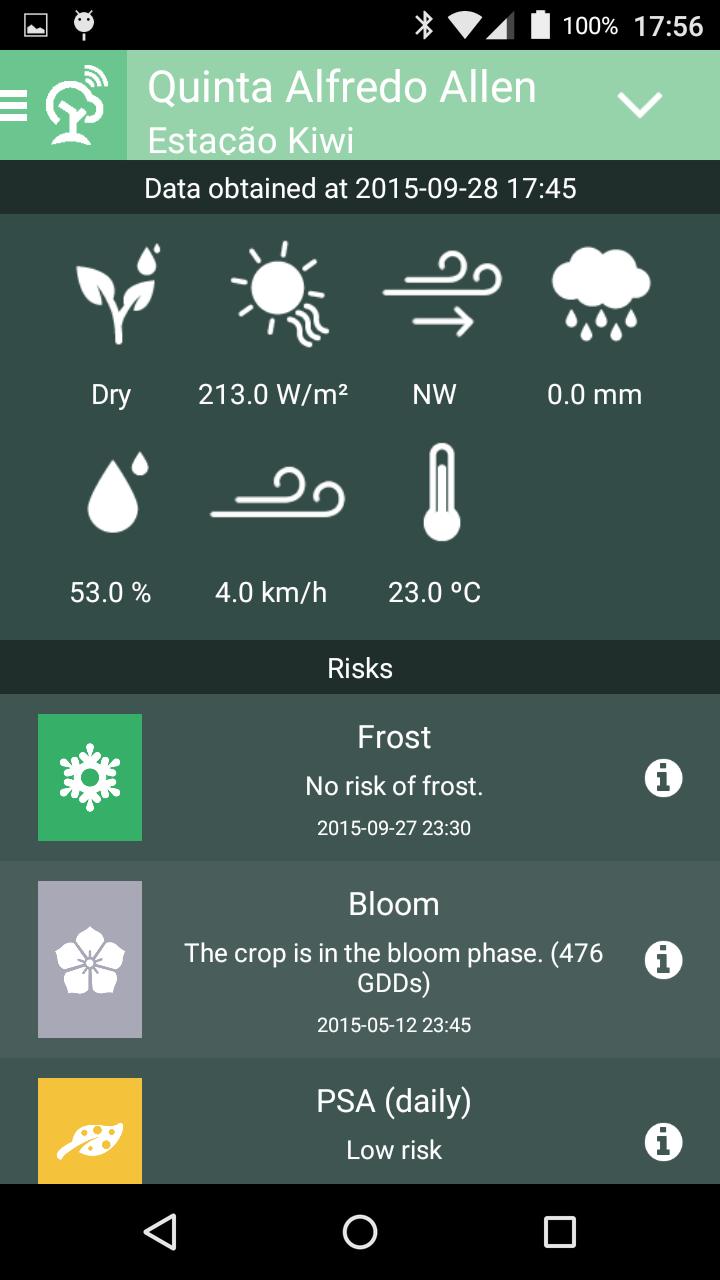 Приложение позволяет производителю контролировать свою плантацию в режиме реального времени, путем измерения нескольких метеорологических параметров, таких как температура, влажность, скорость ветра, направление ветра, излучение, влажность почвы и другие.