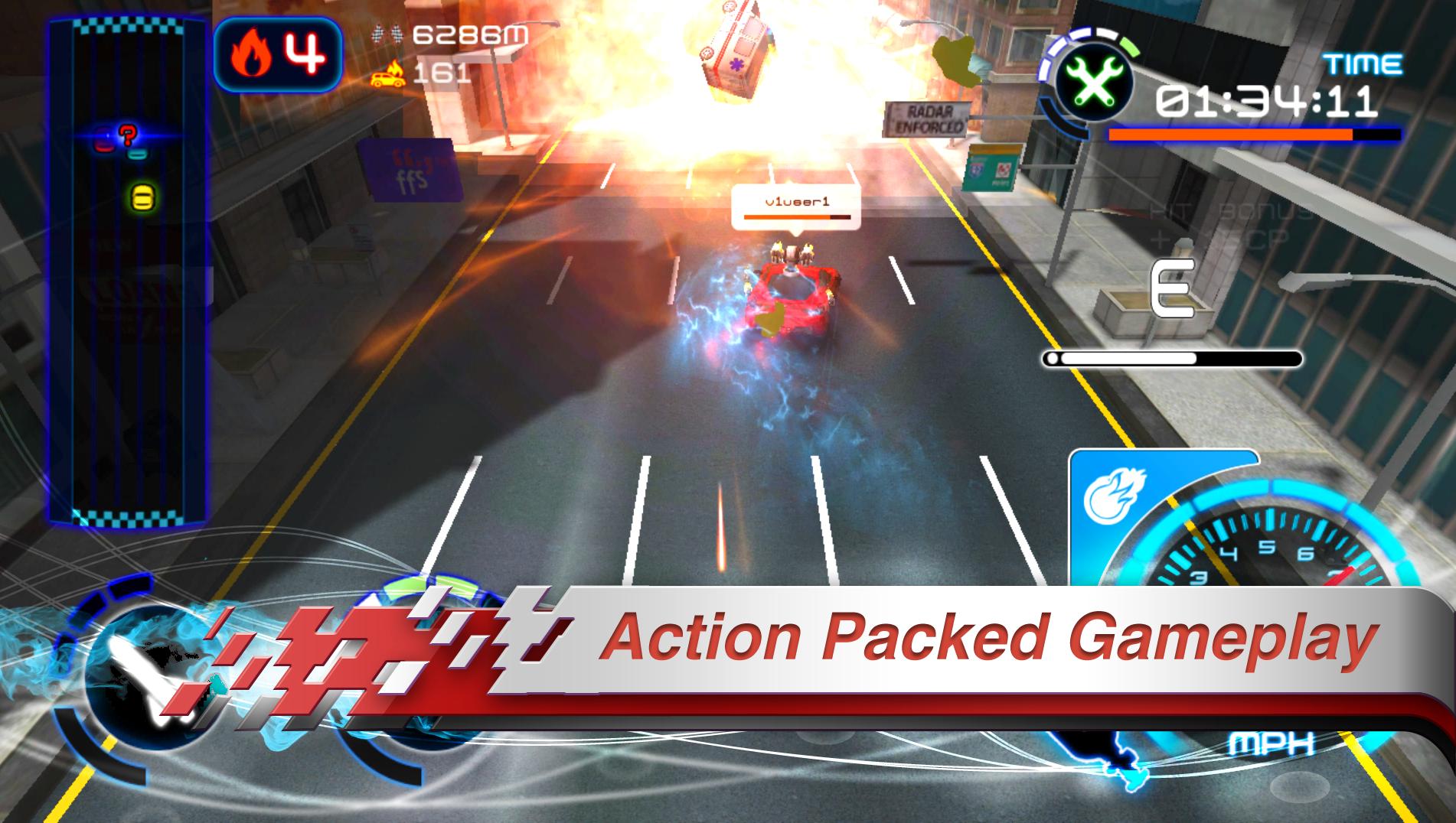 4. PvPvE – The opponent player isn’t the only one eager to get in your way; rush hour traffic and the heavily armed police force will do what they can to make things difficult, especially for the one ahead of the pack.