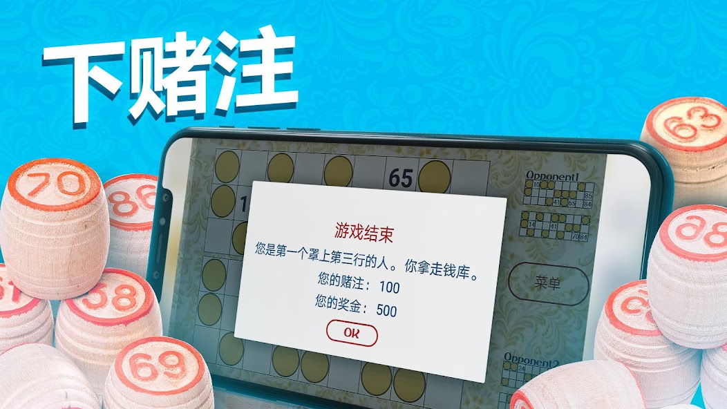 The player chooses a card with numbers. The game uses 90 balls. The winner is the person who fills their cards in first.