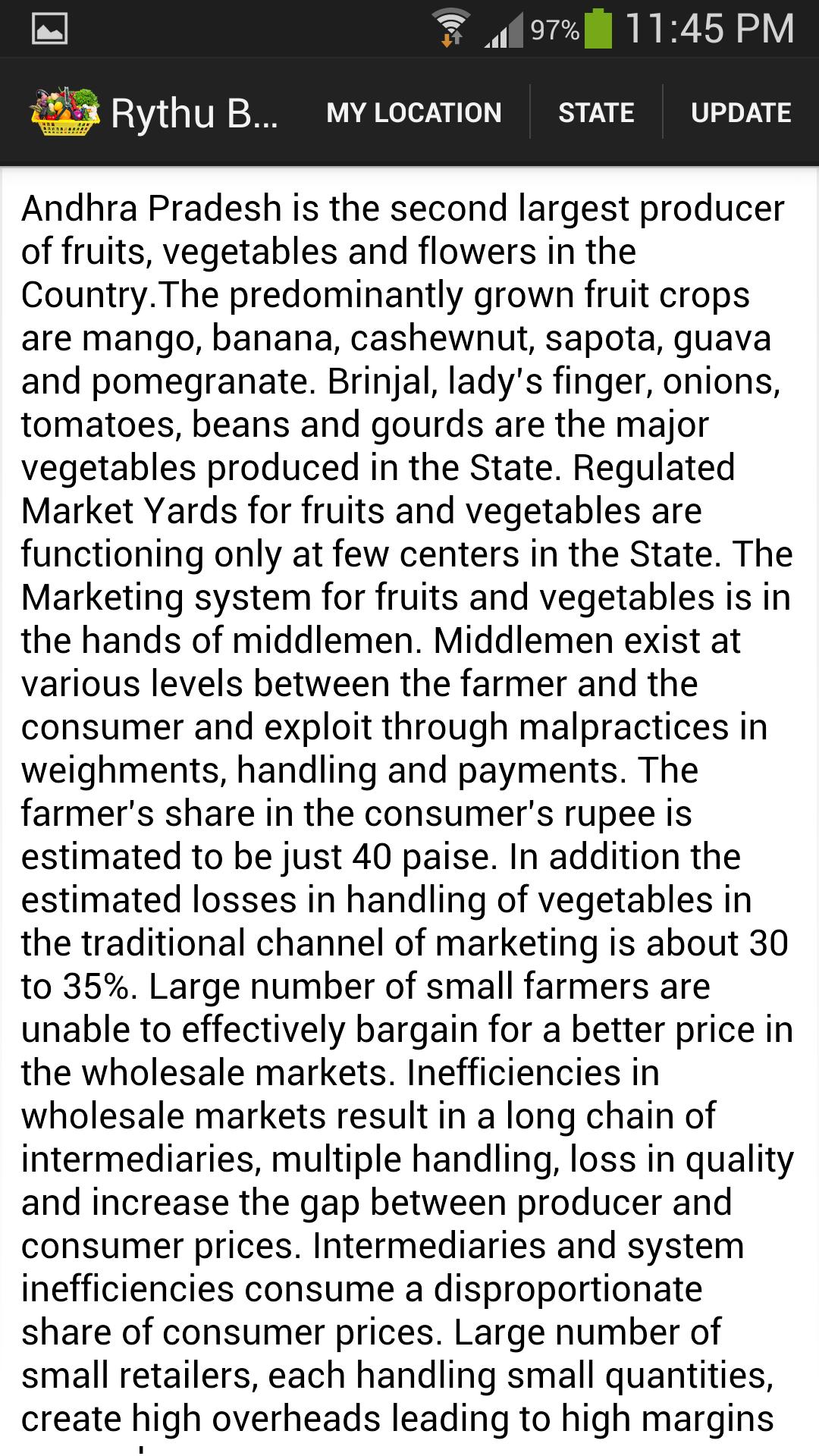 • This app covers all Rythu Bazars located both in Andhra,Telangana and various states.