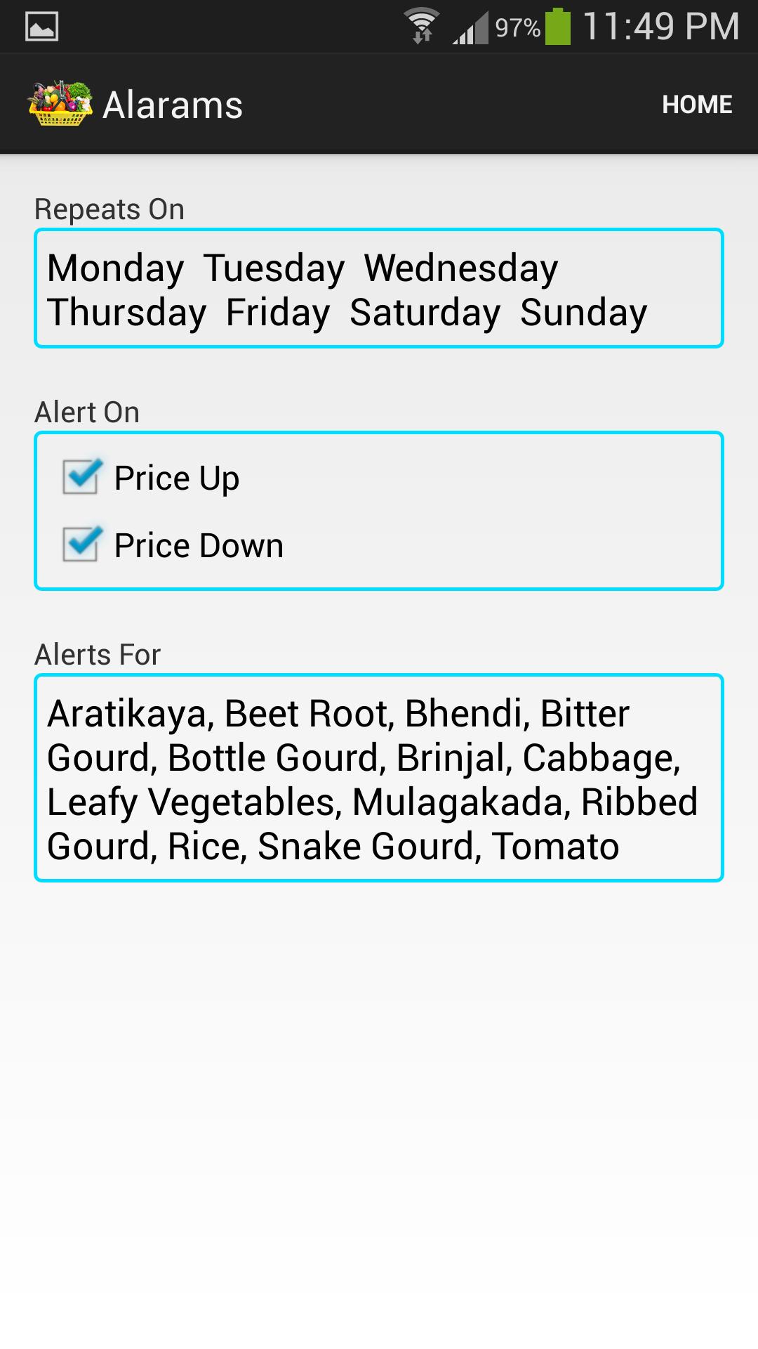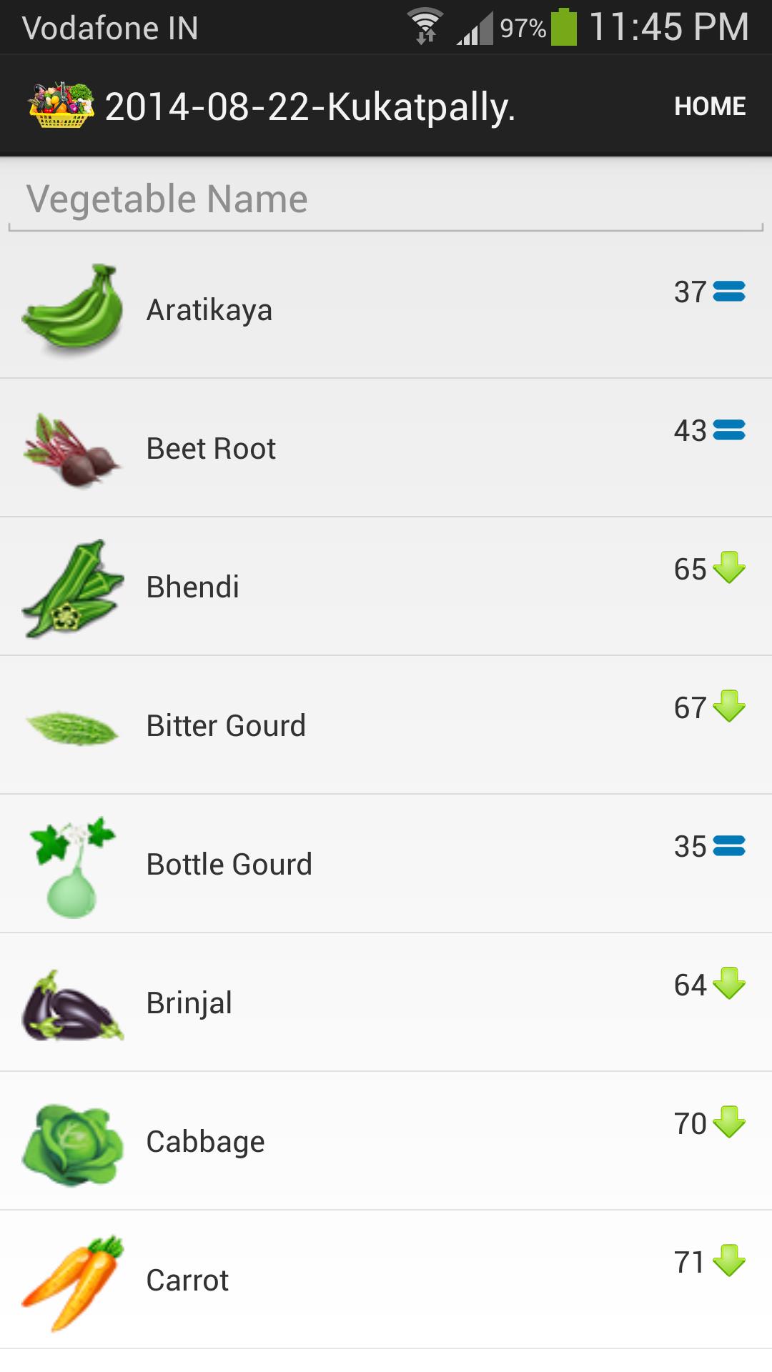 • Simply check your nearest Rythu Bazar vegetable prices using 'My location' option in menu.