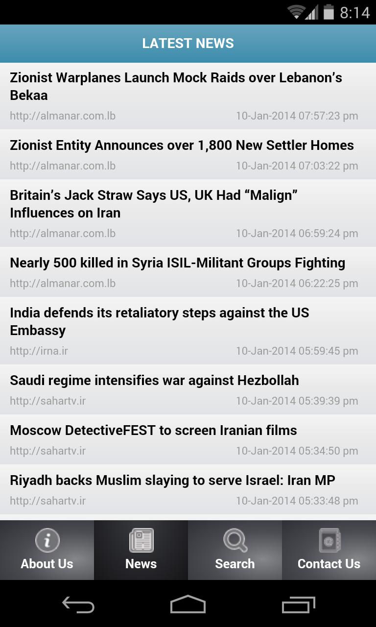 News Feeds collected from PRESS TV, AL MANAR, SAHAR TV, AL ALAM & IRNA.