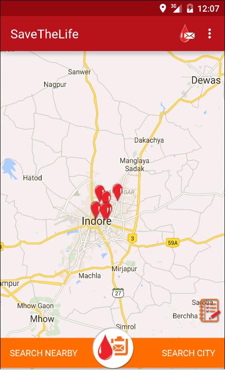 • Search Near By - This option will allow the user to search a voluntary blood donor, who is available in nearby location.