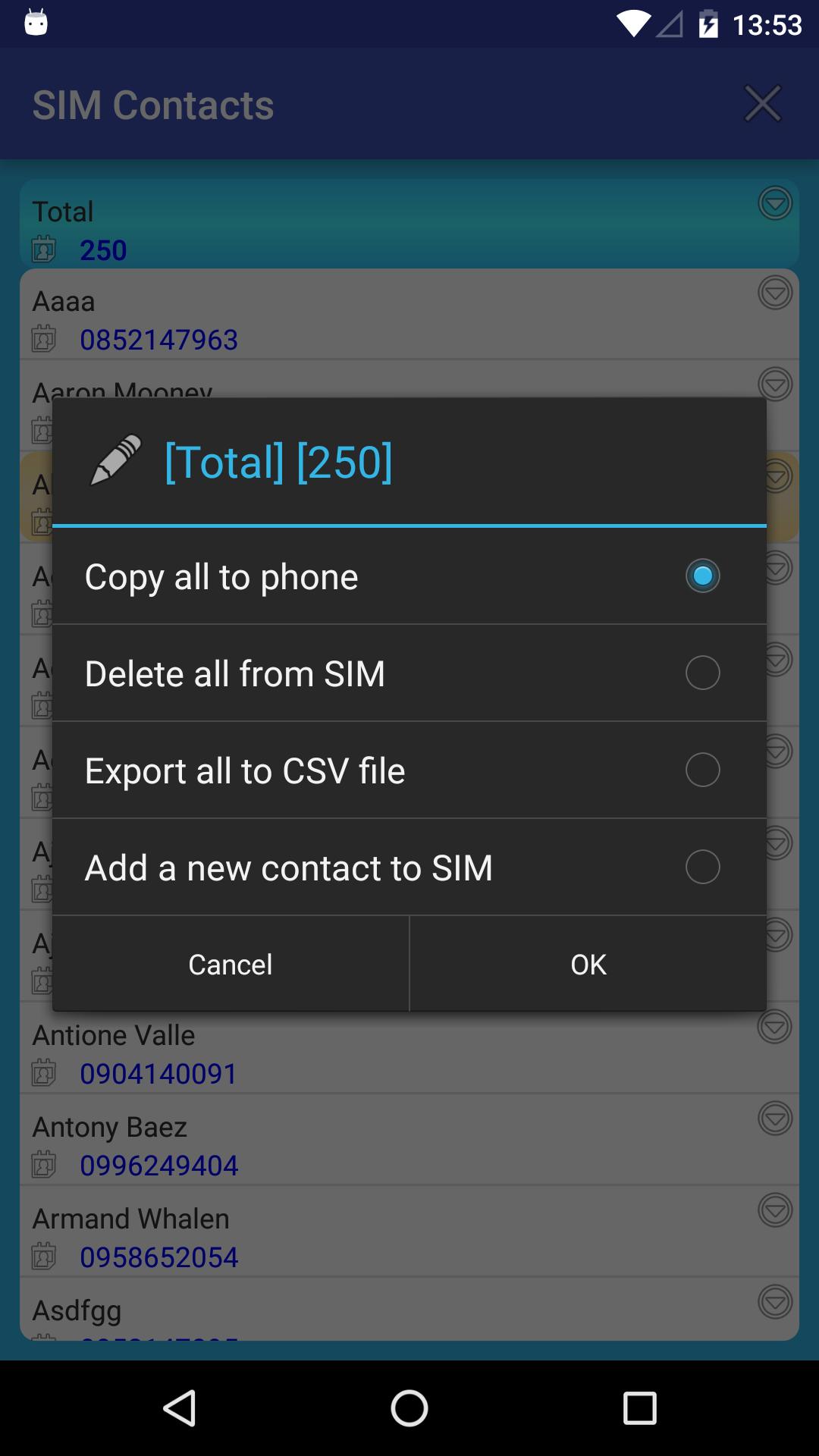 * Add/Edit/Delete/Copy/Export contacts from SIM/Phone.