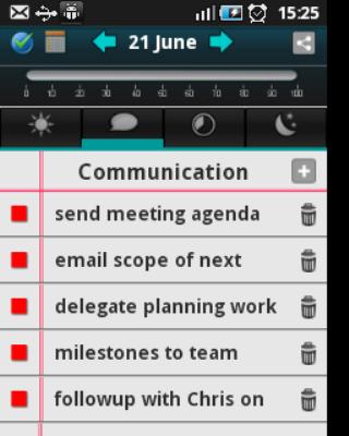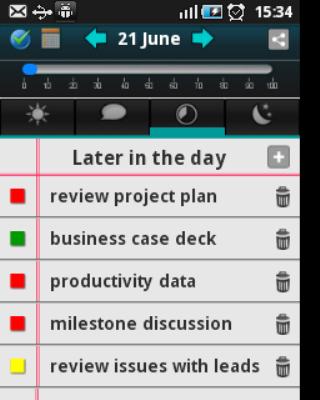 Finally, it gives you simplest way to manage your activities throughout the day. As all the tasks listed are to be completed/reviewed/progressed on the same day, we have not added functions like alerts, reminders, sync etc.