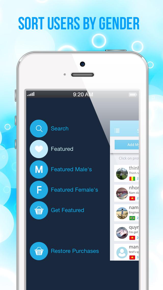 Use a simple swipe gesture to filter by male and female and also view our most popular users.