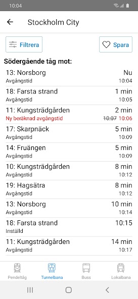 With SL Realtid you can easily see when the nearest departures for the selected station.