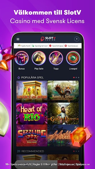 Welcome to the SlotV app where we gathered the best casino slot games with jaw-dropping jackpots. The casino operates under the Swedish gambling licence which is regulated by the swedish gambling authority (Spelinspektionen), according to the Swedish laws and standards.